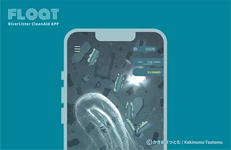 「FLOAT」は、河川ごみ問題に対する意識を高めるために開発された、アプリです。プレイヤーは流れてくるPETボトルなどのごみを波の力でカゴに誘導し、回収していきます。シンプルな操作ながら、水面の波紋や音の演出が心地よく、思わず黙々とプレイしてしまう“ZEN”な体験が味わえます。また、アプリ内での行動が現実に影響を及ぼす現実と仮想現実をつなぐ社会実験的な仕組みを有しています。